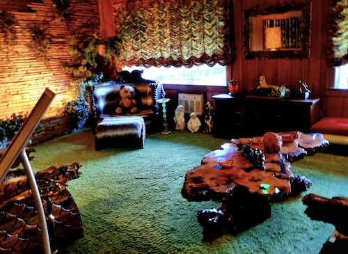 The notorious Jungle Room with its tiki bar furnishings, fake waterfall and coloured lights, scene of the recording of parts of the Moody Blue and From Elvis Presley Boulevard albums. The space where the dead King lay in his open casket, watched over by his nine-year-old daughter who sat curled in an armchair clutching a stuffed toy panda as thousands of mourners filed past. Which would screw you up.